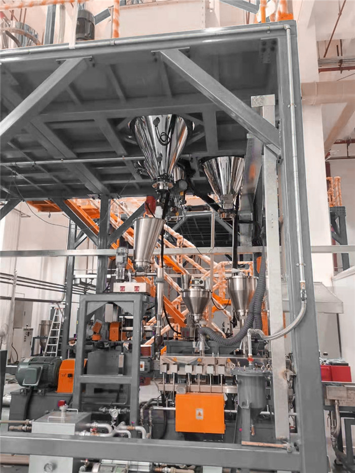 失重式喂料機(jī)由料斗、喂料器(單、雙軸螺旋喂料器)、稱重系統(tǒng)和調(diào)節(jié)器組成,在操作中,料斗、物料和喂料器共同連續(xù)地進(jìn)行稱重。隨著物料送出后,測量真實的失重速率,并將它與所需要的失重速率(設(shè)定值)加以比較。通過調(diào)解喂料器速率來自動修正偏離設(shè)定點的偏值。從而可以均勻準(zhǔn)確地連續(xù)喂送物料。