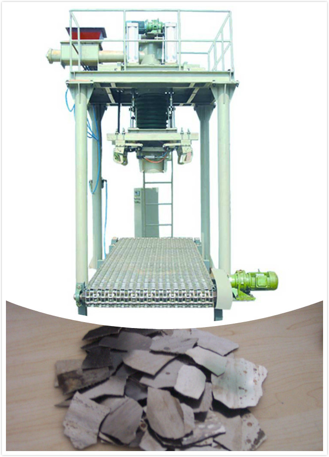 根據(jù)電解錳片物料的性質(zhì),包裝下料方式采用皮帶給料,并在料倉下料口加裝電振給料機(jī)用以控制物料的均衡給料。