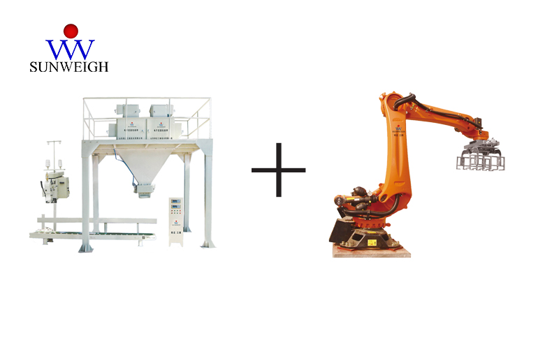 減少人力,智能化、自動化是現(xiàn)代各個行業(yè)不論大小企業(yè)都在努力追求的生產(chǎn)管理愿景。人工的包裝碼垛對很多行業(yè)的散料計量堆垛物料倉庫管理等實在是件頭疼的事,物料轉(zhuǎn)移占地空間大,效率低,人工成本也較高。因此全自動包裝碼垛生產(chǎn)線的需求日益凸顯。然而對于實力尚不夠或者資金不充足的中小起來也來說全自動包裝碼垛生產(chǎn)線的資金投入實在負擔不起。那么能夠節(jié)省大部分勞動力同時比全自動包裝碼垛的資金投入少很多的半自動包裝+機械手碼垛無疑是中小企業(yè)的最佳選擇。